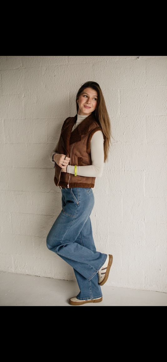 Medium Wash High Rise Patched Pocket Wide Leg Jeans