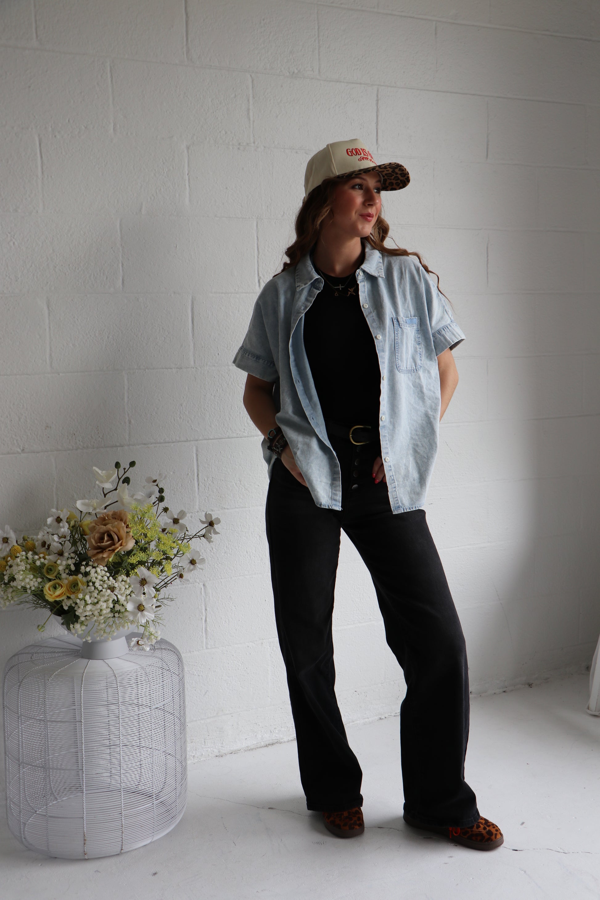 Everyday Black High-Waist Button Up Wide Leg Jeans