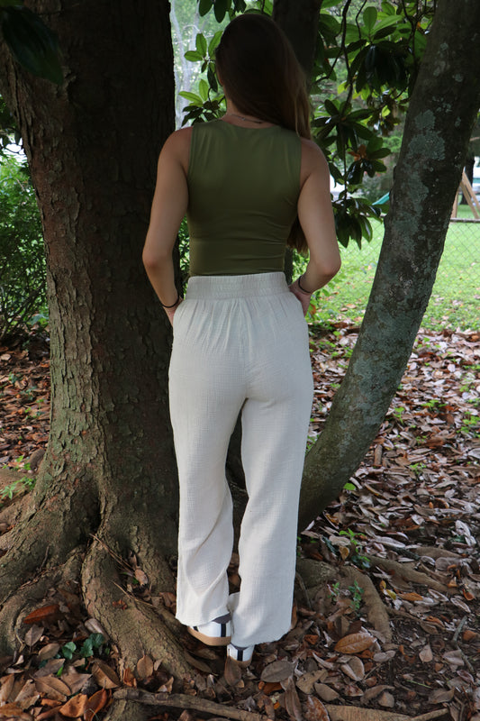 Sand Washed Double Gauze Elastic Band Waist Flow Pants