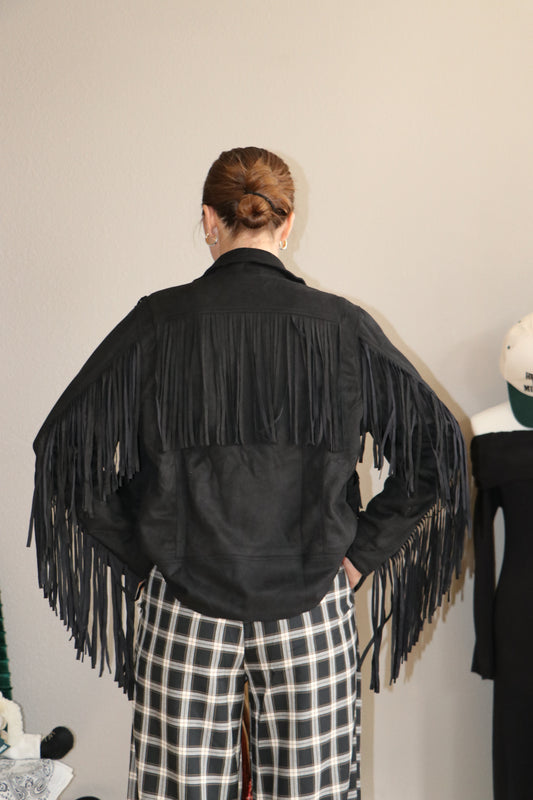 Suede Fringe Snap Button Jacket