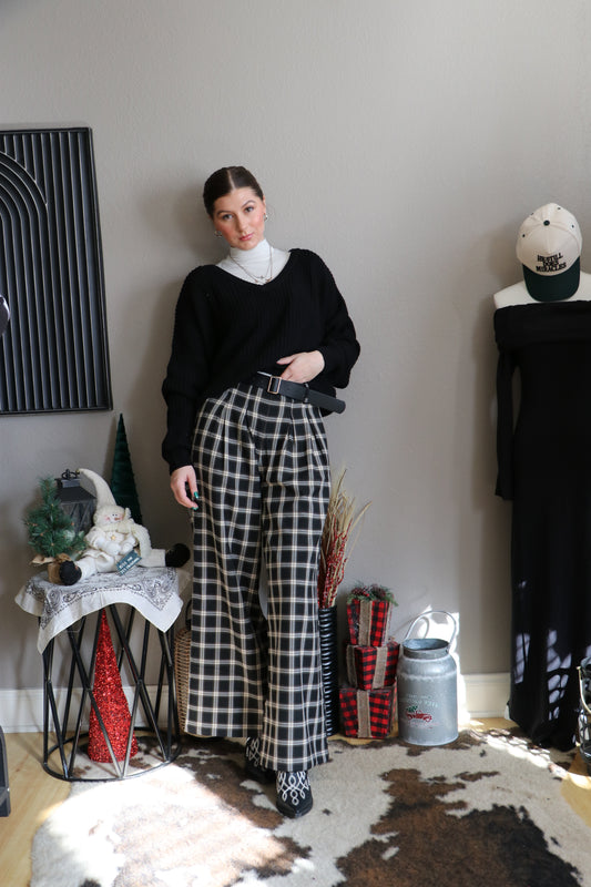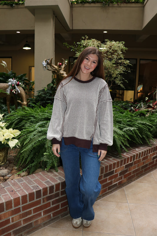 Two Tone Otto Ribbed V-Neck Oversized Knit Top