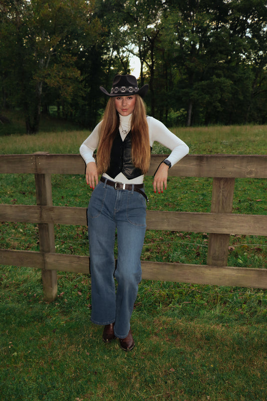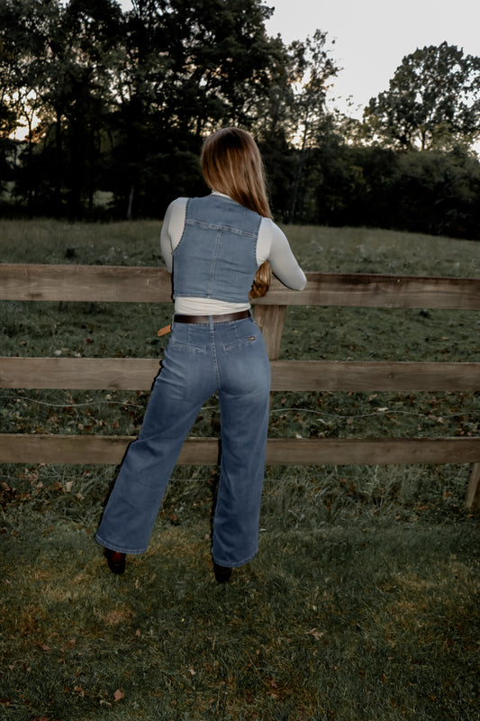 Medium Wash High Rise Patched Pocket Wide Leg Jeans
