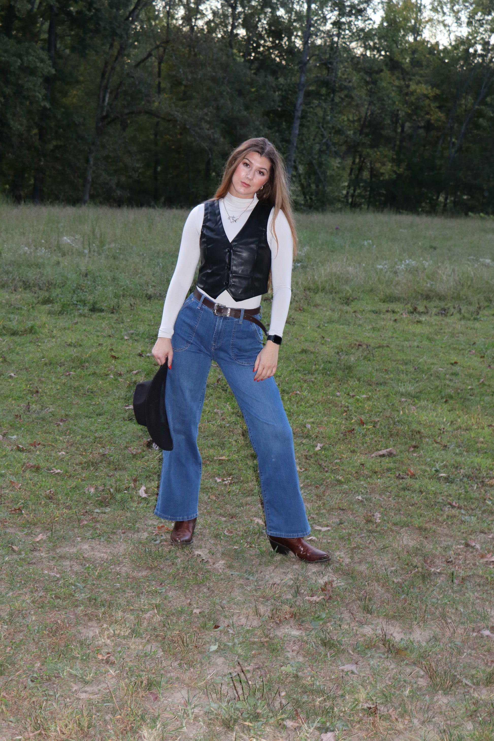 Add a bold, edgy touch to your wardrobe with the Faux Leather Sleeveless Button Up Vest. Crafted from high-quality PU fabric, this vest offers a sleek, modern look with a durable finish. A fitted look with room to move and groove this vest is great for all occasions- dinners, concerts, nights out, & more!