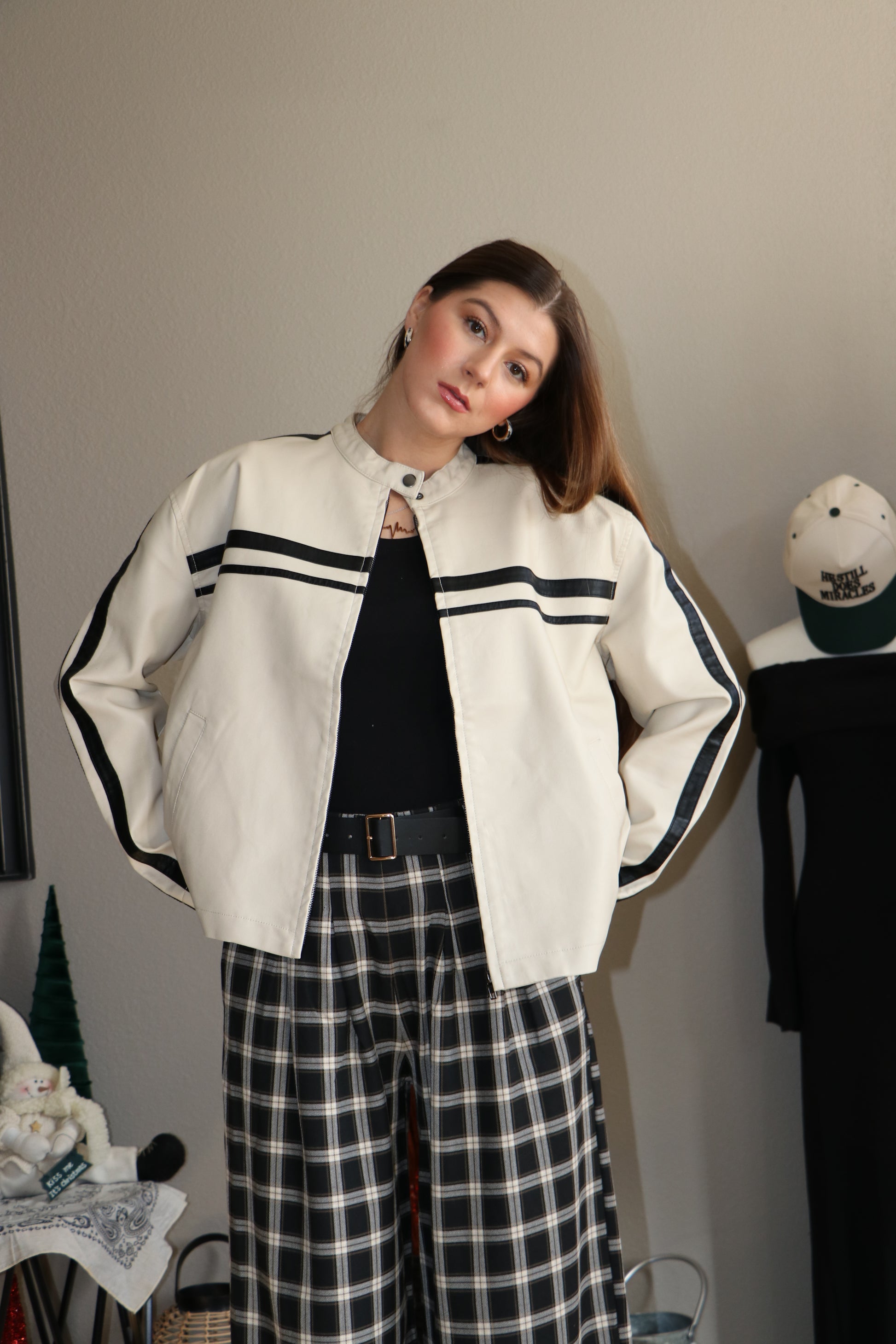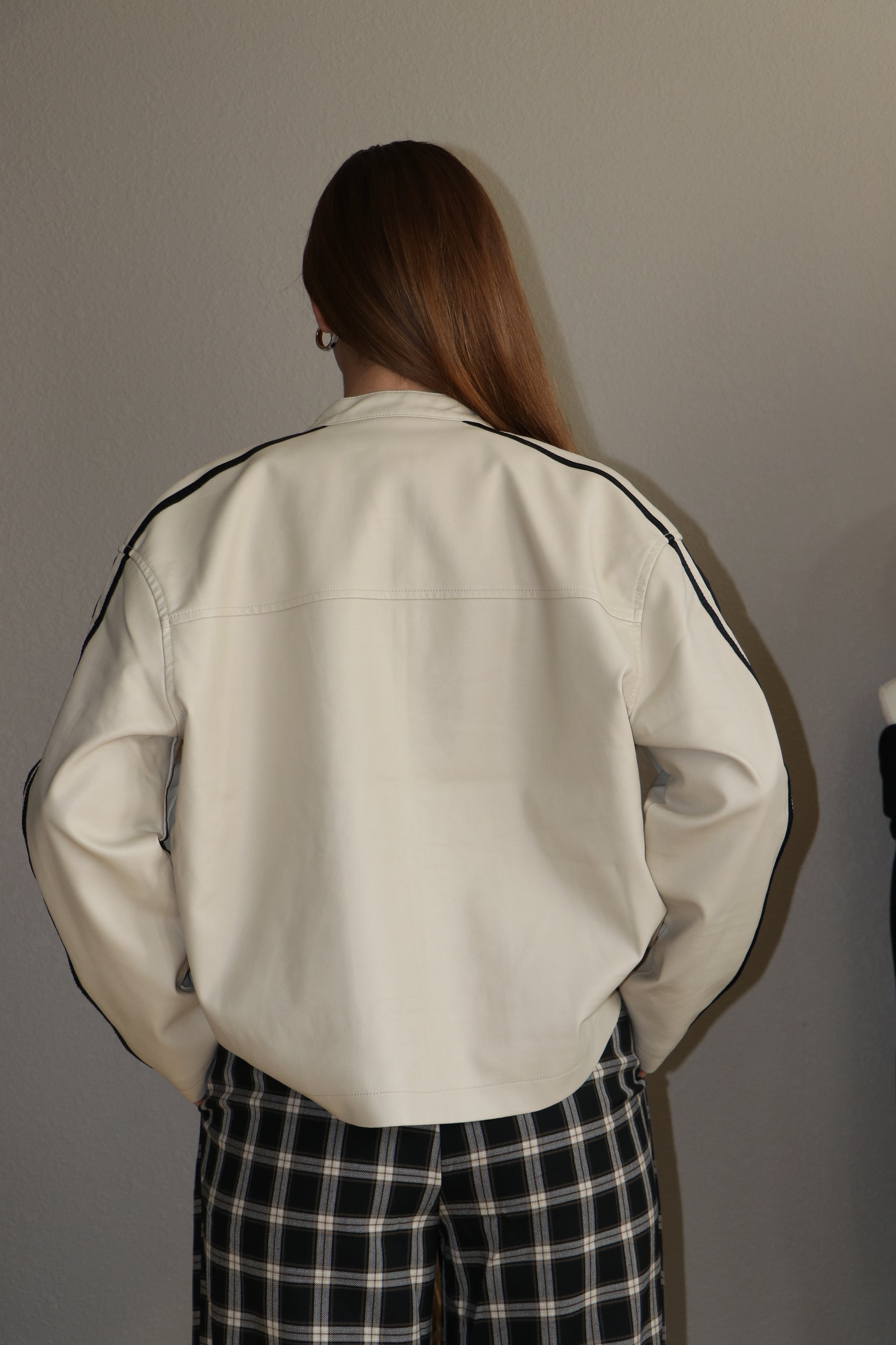 - new arrivals, new 2025, active basic, active usa, leather jacket, faux leather, pleather, pu jacket, winter, fall, outerwear, trending, must have, stripe, zip up jacket