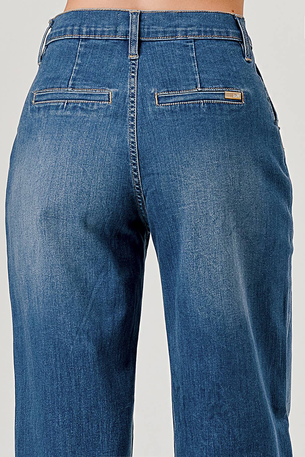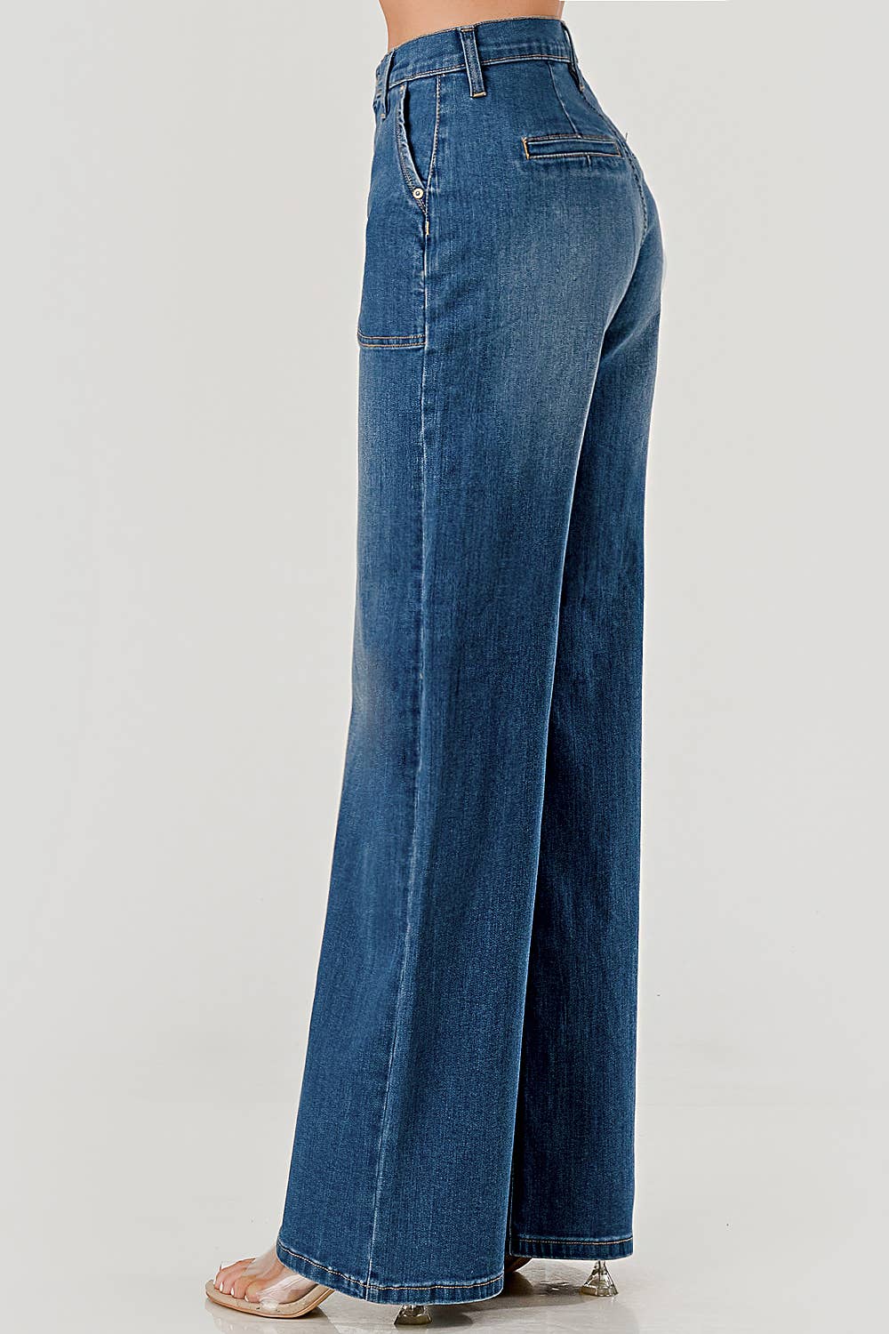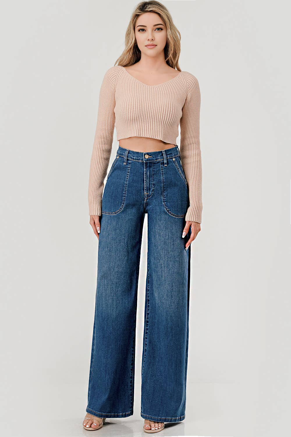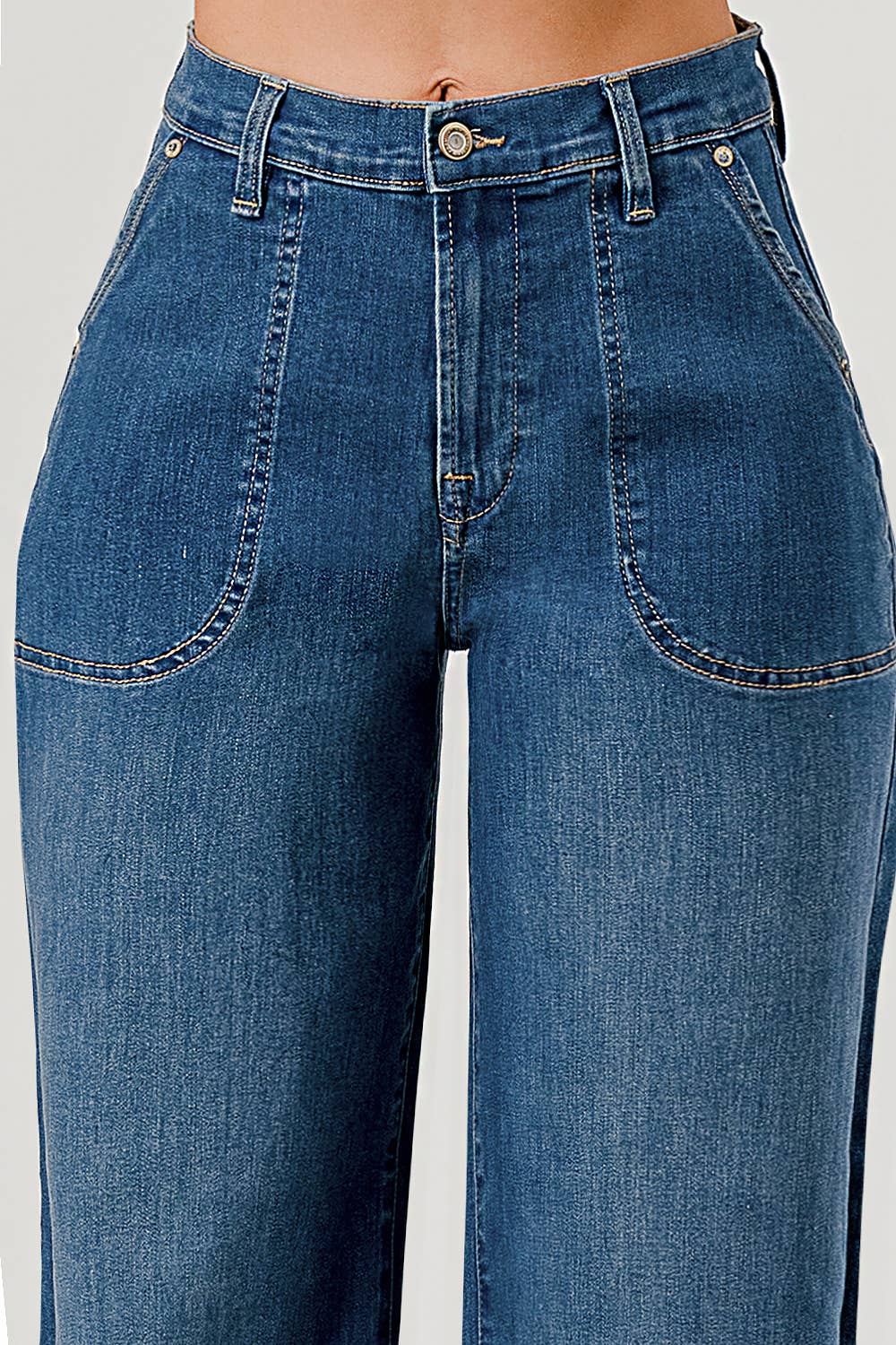 Medium Wash High Rise Patched Pocket Wide Leg Jeans