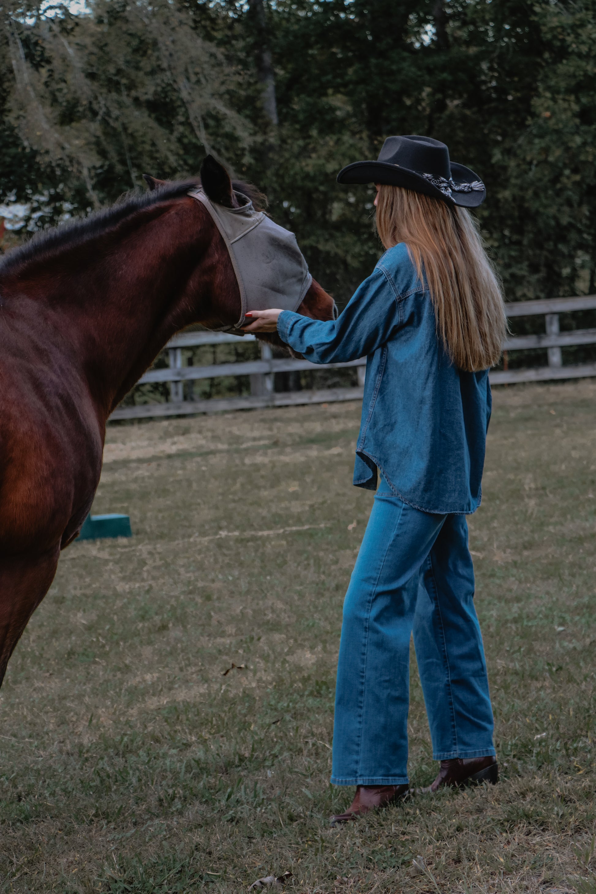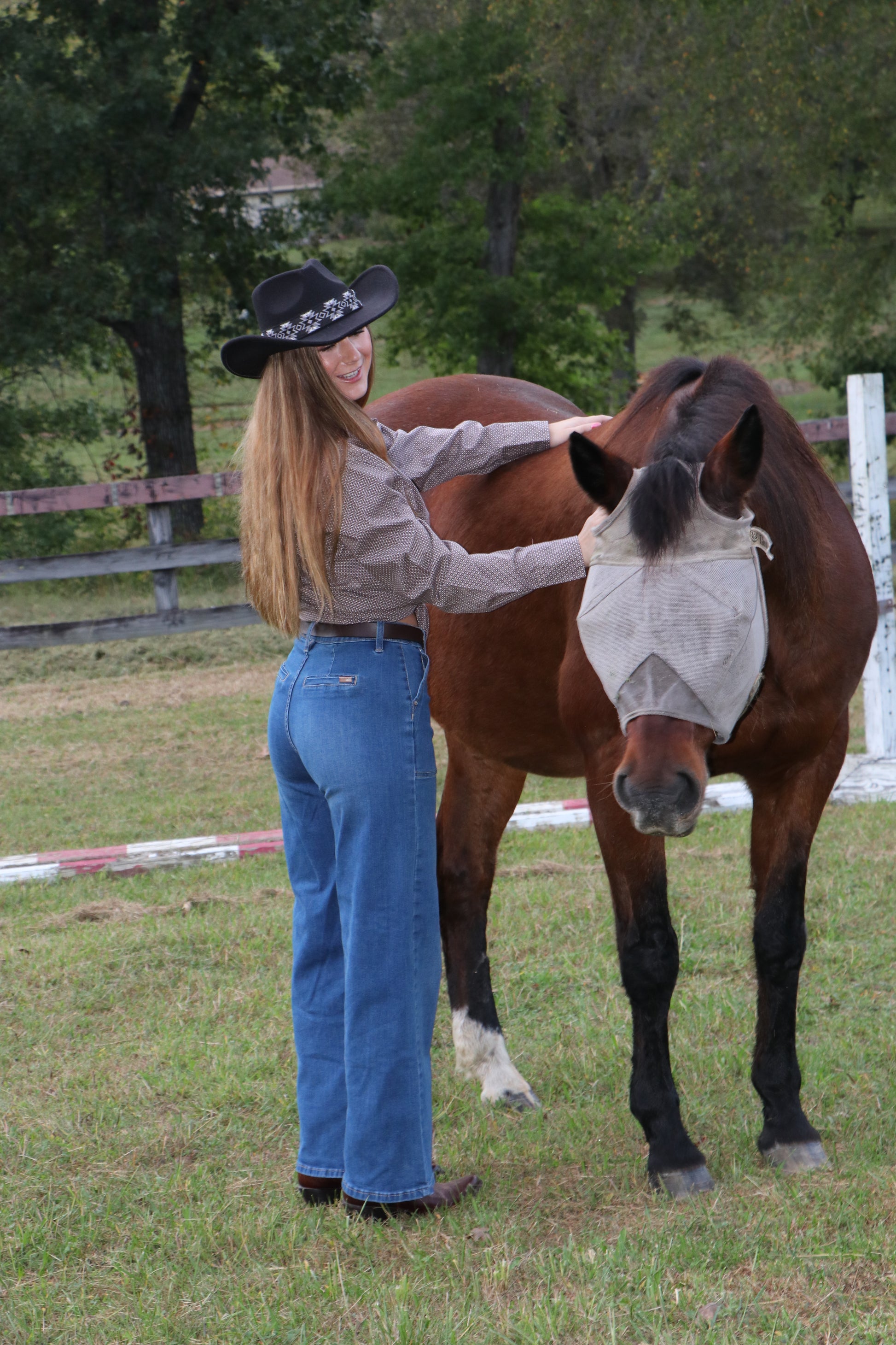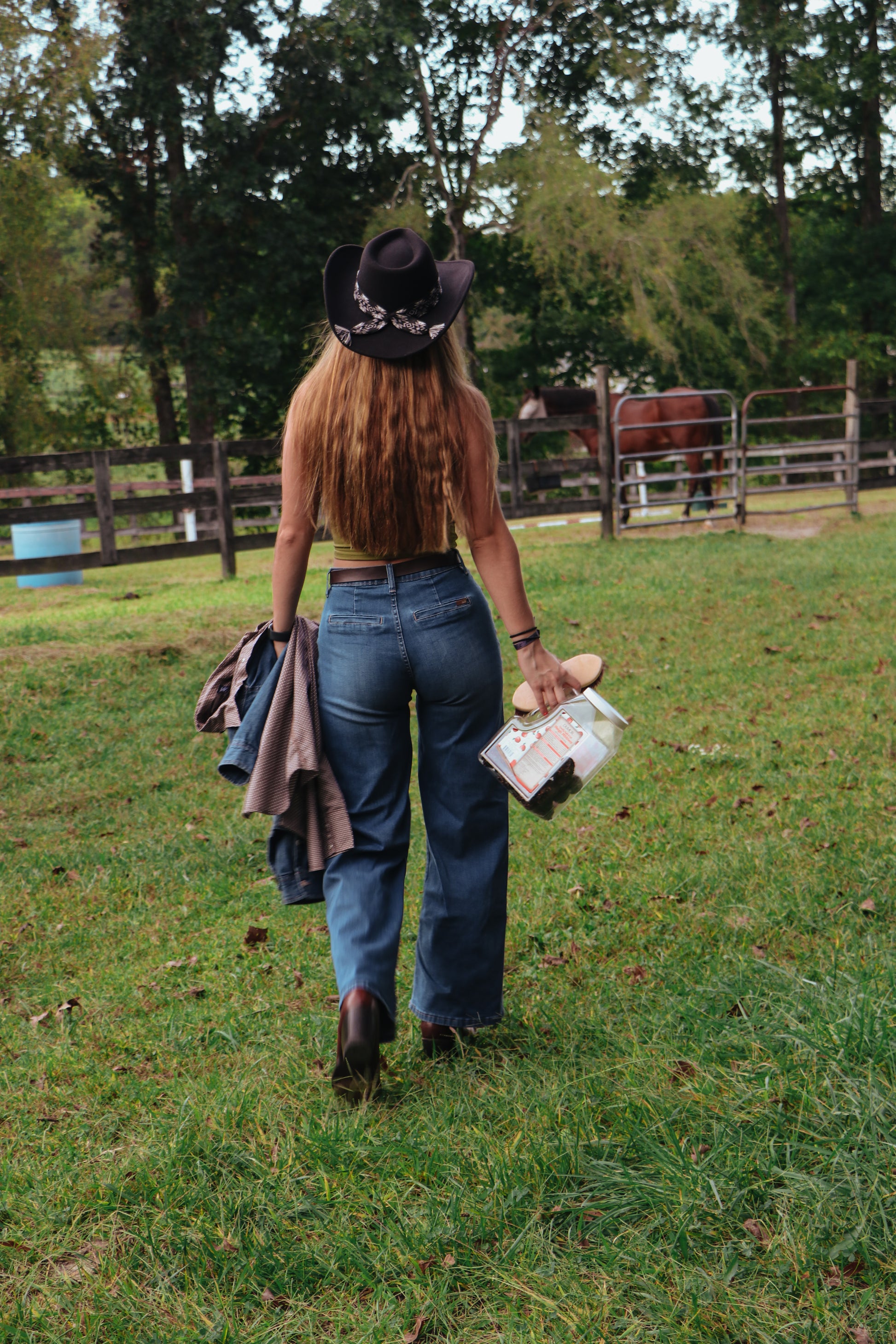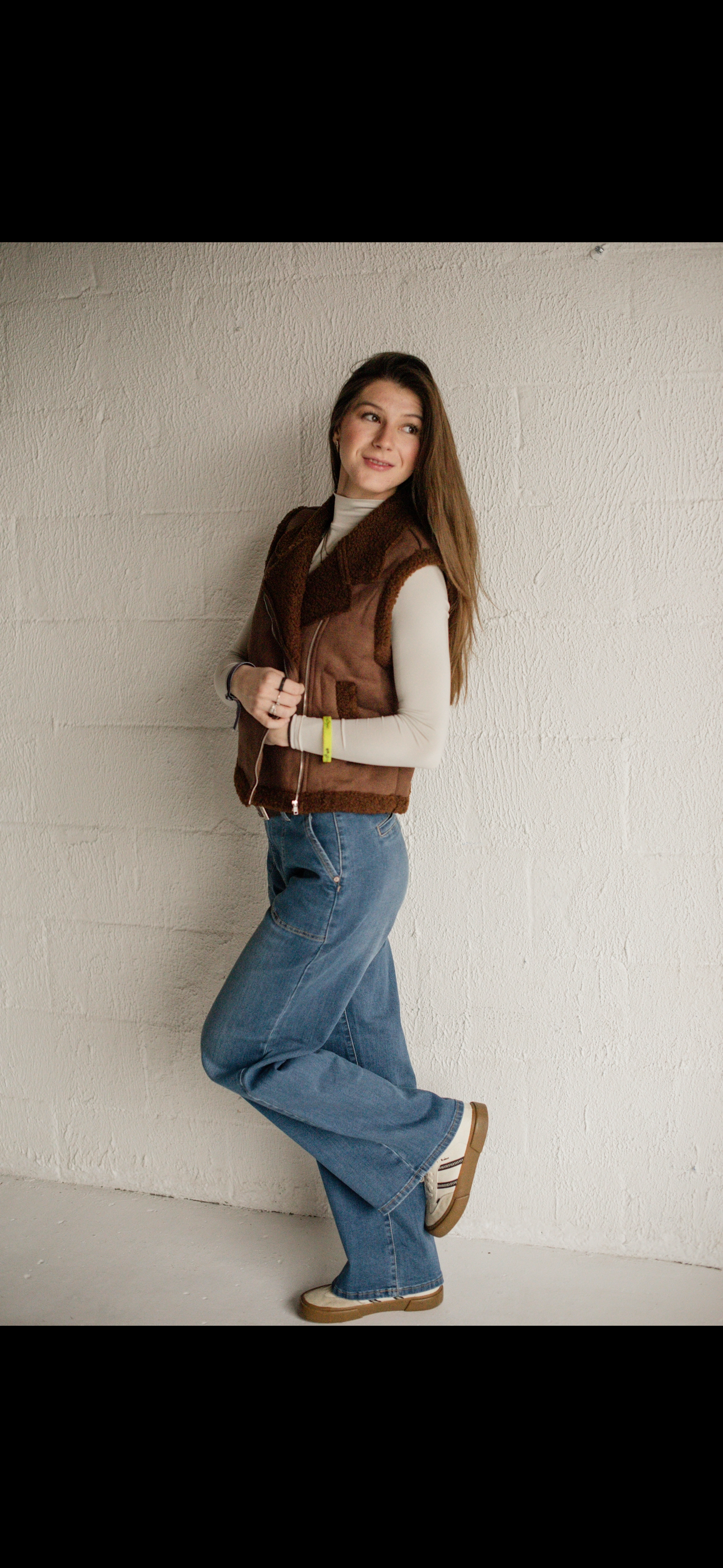 A classic look with all day comfort- The Medium Wash High Rise Patched Pocket Wide Leg Jeans offer an amazing fit with a stretchy fabric combination of Denim and Cotton. Featuring patch front pockets with stitching detail on the back and wide leg bottom for a vintage yet trendy style!