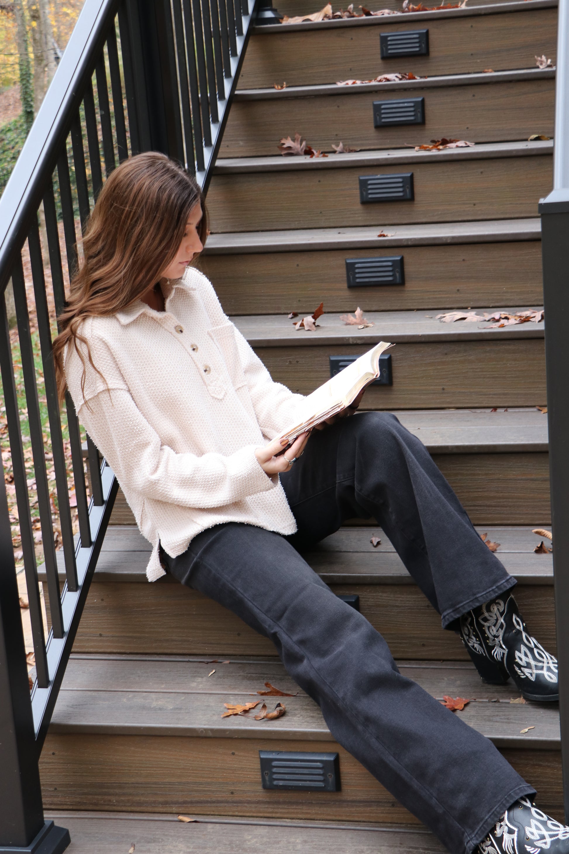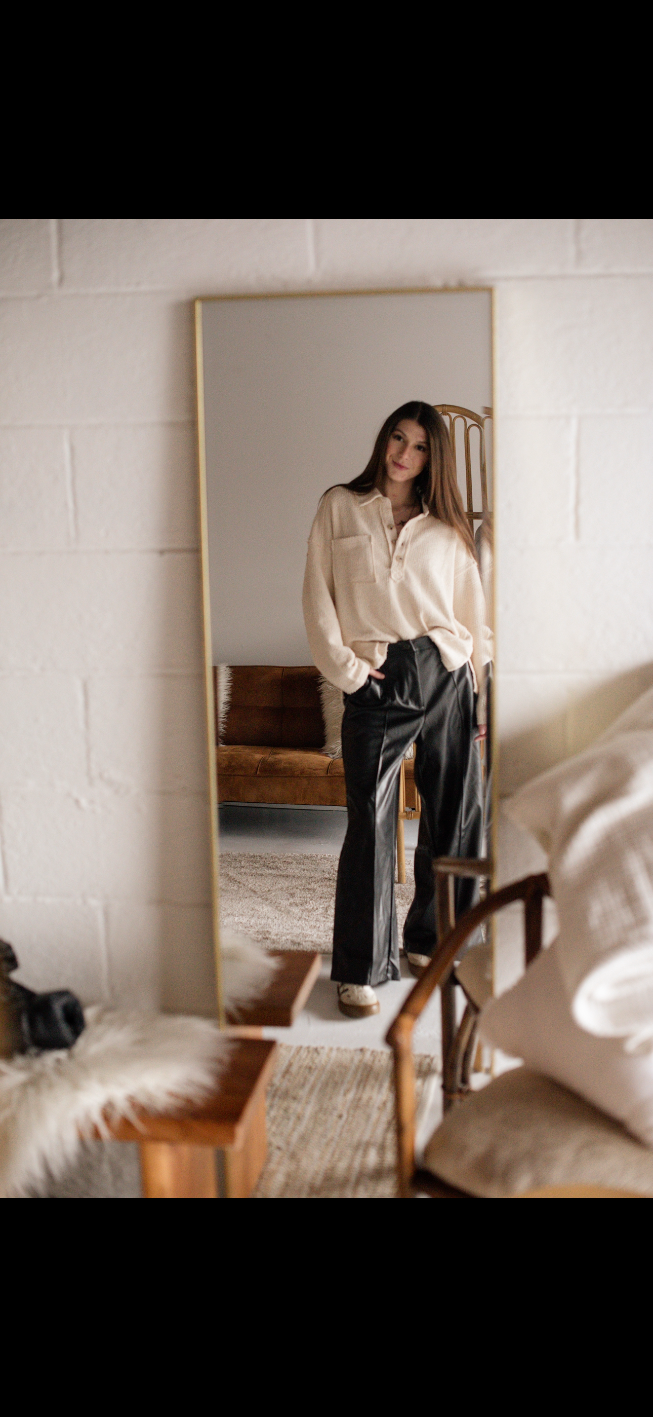 Cozy Comfort Chic! The Half Button Down Collared Textured Knit Top features a Front Patch Pocket, Oversized Fit with a Drop Shoulder and textured fabric making this the perfect top for cozy nights in or trips to the cabin or family dinners!