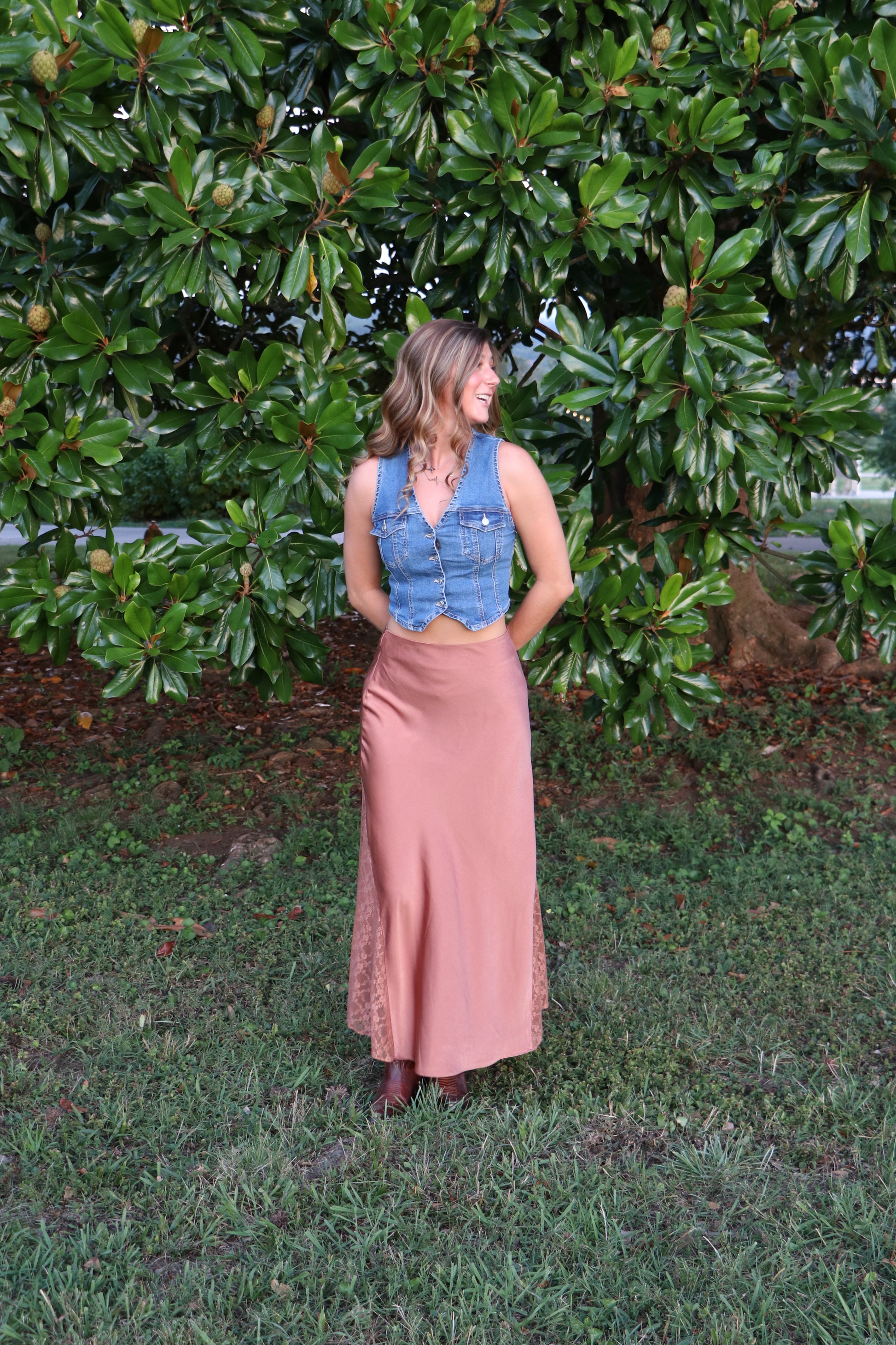 This Trendy Vest Features A Crop Length With Button Front And Asymmetrical Hem For A Casual Style.