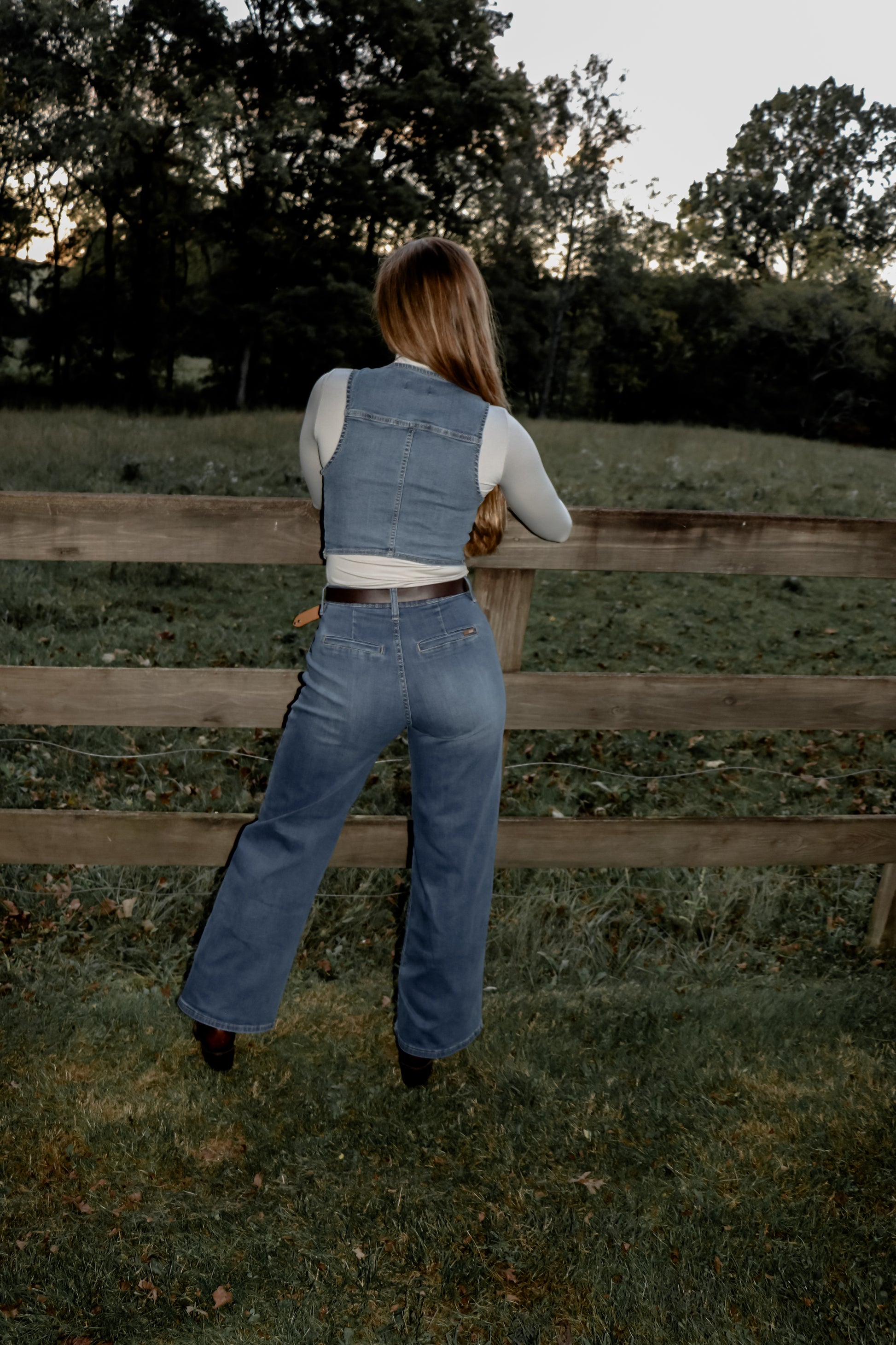 Wear it alone, add a layer underneath such as one of our basic long sleeves or turtlenecks, and add a layer on top such as one of our jackets like the leather shacket or corduroy bomber jacket! The vest pairs great with our matching denim/cotton blend jeans, trousers, or one of our maxi skirts!