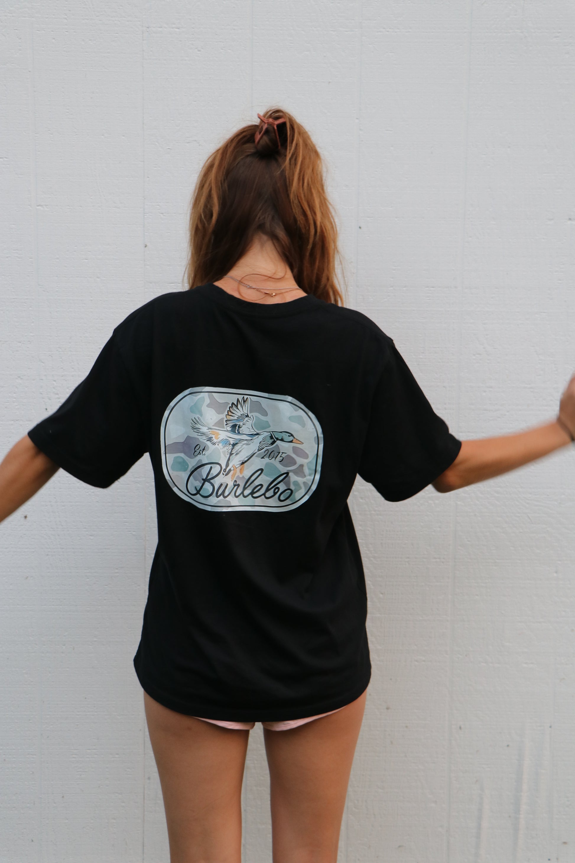The Burlebo Camo Duck Tee brings hunting season vibes into your wardrobe with a bold camo flying duck graphic on the back and matching chest logo on the front. Crafted from soft, breathable cotton with a relaxed fit, it’s perfect for days in the field, weekends at the lake, or casual nights out with friends.