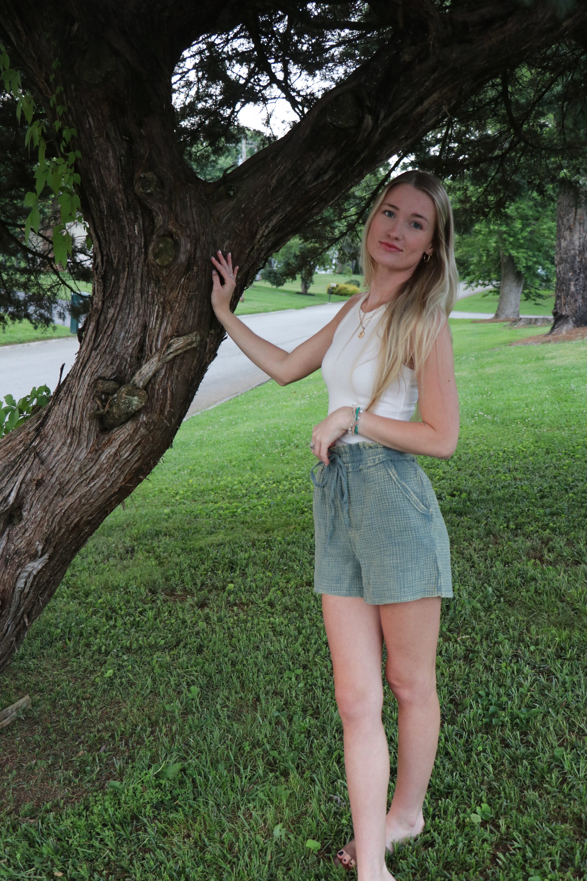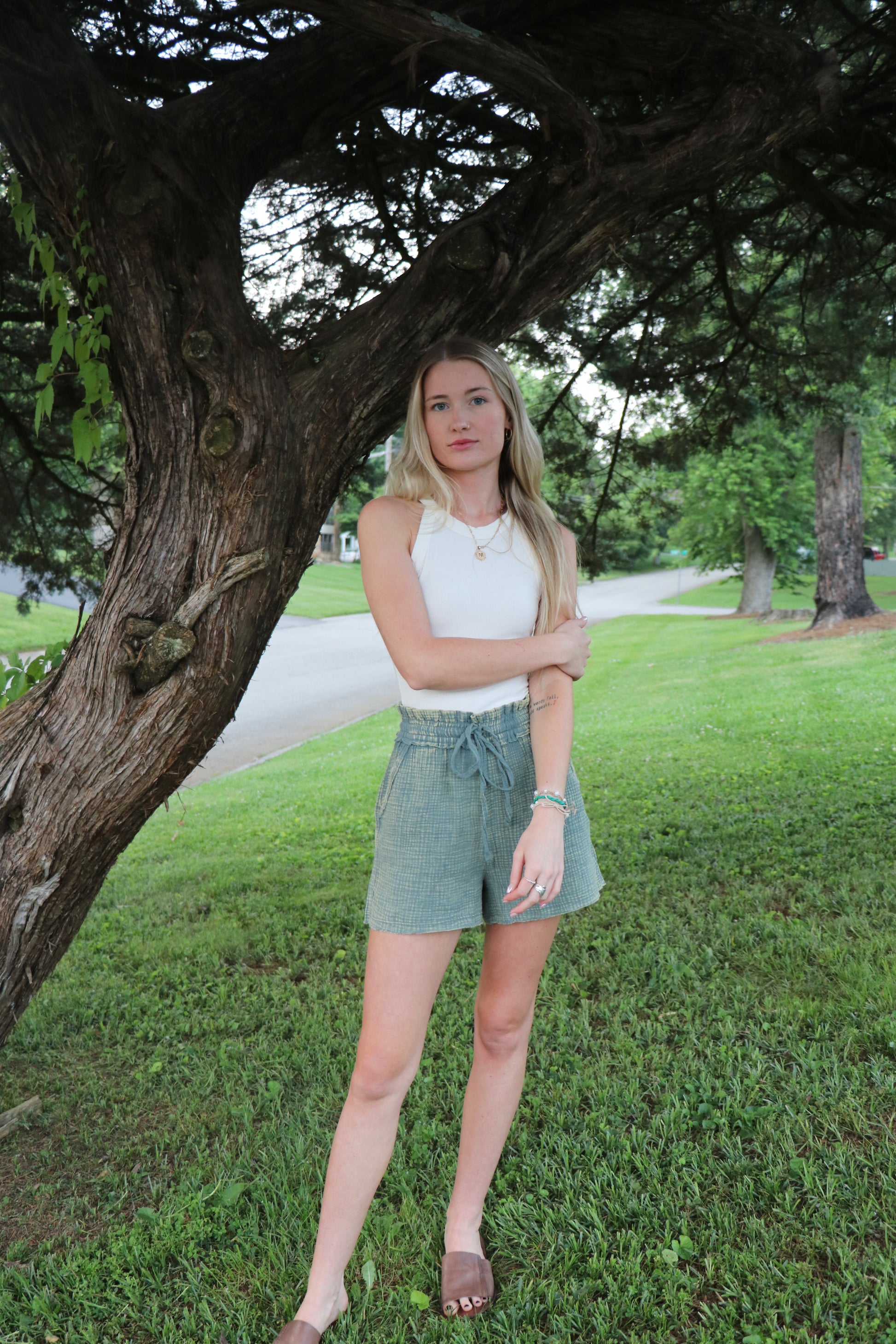 Green Washed Double Gauze Lightweight Drawstring Shorts